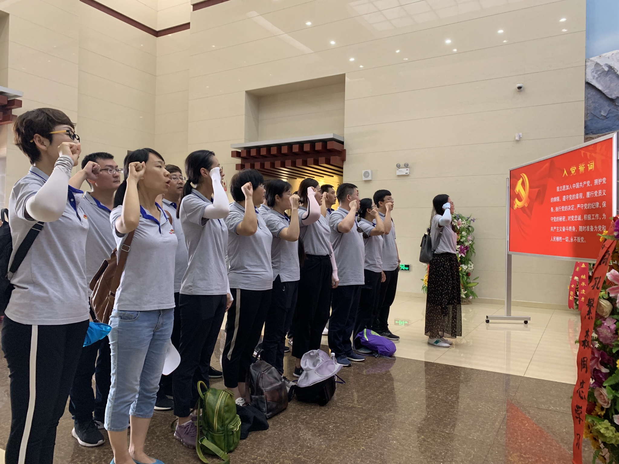 在孔繁森紀(jì)念館,黨支部書記郭培勛向孔繁森同志雕像敬獻(xiàn)花籃,全體黨員面向黨旗,深深三鞠躬,重溫入黨誓詞。大家跟隨講解員從“齊魯赤子、汗灑雪域、情系高原、廉潔清正、深切懷念、光耀神州”六個(gè)專題認(rèn)真聆聽了孔繁森同志的光輝事跡,仔細(xì)觀看有關(guān)孔繁森同志事跡的圖片和影像資料,深切緬懷了孔繁森同志短暫而又輝煌的一生,接受了一次震撼心靈的精神洗禮。